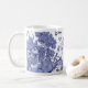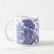 This ceramic mug wraps the timeless Blue Willow motifs—willow trees, a three-arched bridge, pagoda, flying birds, and a boat—into a panoramic scene where genteel figures in Regency attire shamble as zombies. The cobalt blue on white porcelain evokes authentic transferware, with ghoulish details like tattered gowns and lurching poses adding macabre humor to the pastoral landscape.