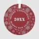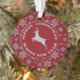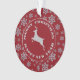 Un renne en faux argent brillant est au centre de ce magnifique ornement de Noël. Il est entouré d'un texte argenté qui dit Joyeux Noël Bonne Année. Une bordure circulaire de flocons de neige argentés finit les bords. Tout est placé sur un arrière - plan rouge de Noël. L'autre côté de l'ornement a la même image, mais avec votre texte personnalisé. Changez l'année en votre nom, si vous voulez. *Veuillez noter que l'image est imprimée et ne contient aucune parties scintillant réelle.*