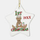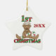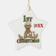 Un adorable ornement de 1er Noël d'un bébé avec un ours en peluche aux bois de rennes et un texte rayé sucre de canne et sucre de canne qui dit "1er Noël". Il est daté 2010 mais vous pouvez facilement changer la date!