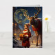 Vous cherchez une carte personnalisée à envoyer avec votre cadeau de Noël? Notre carte pliante Reindeer Special Delivery vous permet de personnaliser l'avant avec votre nom et le message intérieur. Il présente une jeune fille habillée en rouge qui livre un cadeau de Noël avec l'aide d'un ami de rennes. Ils se tiennent dans la neige dans une ville illuminée la nuit tandis que les habitants marchent dans les rues. Le timbre à l'avant est fait de feuille d'or pour cette touche spéciale.