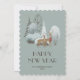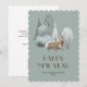 Mignonne aquarelle Bonne année carte avec un pays merveilleux d'hiver avec un doe et un dollar portant une écharpe.