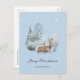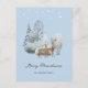 Carte postale Joie Noël avec une scène d'hiver aquarelle avec un dollar et un doe dans une forêt enneigée et des étoiles brillantes au-dessus d'eux. Personnalisez facilement cette belle carte postale de vacances avec votre nom de famille, adresse de retour et texte supplémentaire selon vos besoins.