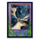 Illustration vintage Joyeux Noël design avec un renne dans une forêt entourée d'étoiles la nuit. L'étoile du Nord brille dans le ciel avec des arbres dans l'arrière - plan. Il attend patiemment que le Père Noël ait besoin de lui pour piloter son traîneau la veille de Noël.