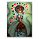 La reine foncée des coeurs peignant Alice dans la copie d'art d'imaginaire du pays des merveilles est interprétation lunatique d'un conte de fées aimé de livre d'enfants. C'est une histoire d'une petite fille qui a décidé de s'habiller en tant que reine des coeurs. Elle tient un scepter anatomique de coeur pendant que les coeurs et les pelles volent hors de lui. L'arrière - plan contient des remous de vert et de turquoise.