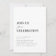 Si vous aimez la simplicité, cette invitation de style simple est faite pour vous. L'invitation présente un design élégant, avec un fond blanc. Au centre, les détails de la fête sont joliment calligraphiés dans une police noire exhalant une atmosphère de sophistication. Accueillez vos invités avec cette invitation de fête classique. La couleur de fond et le texte sont personnalisables.