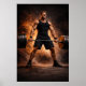 The deep shadows and fiery orange energy create a striking contrast, emphasizing the brutal beauty of strength under pressure. This is not just motion—this is resistance, control, and dominance over weight.