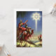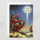 Illustration vintage image religieuse de Noël montrant les trois sages voyageant à dos de chameau guidés par l'Étoile de Bethléem. Une étoile brillante dans le ciel noir révélait la naissance de Jésus-Christ aux sages bibliques et les mena à travers le désert jusqu'à la ville sainte de Bethléem.