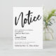 La distinction de cette suite est due à la police de script manuscrite décontractée et audacieuse utilisée pour les phrases d'accent. Si vous êtes en position de devoir informer vos invités mariages que vous avez dû changer de date importante, voici une option audacieuse. Dans cet article, la police de caractères manuscrite a été utilisée pour créer un graphique simple représentant le mot "Avis". Utilisez les champs modèles pour ajouter vos détails personnels et faire de ce design moderne votre propre. L'arrière - plan blanc peut être changé à n'importe quelle couleur que vous préférez. Veuillez communiquer avec toute demande spéciale ou customiser de l'aide. // 105 //