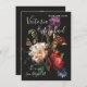 Magnifique arrangement floral botanique de maître hollandais inspiré de Rembrandt sur fond sombre. Celui-ci est destiné à une annonce de Save the Date pour un mariage, mais vous pouvez modifier le texte pour l'adapter à vos besoins.