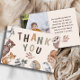 Cette magnifique carte de remerciement aquarelle présente une scène forestière fantaisiste, ornée d'illustrations adorables de créatures de la forêt. Avec un message éditable et un modèle de photo pour rendre ce modèle unique personnel.