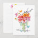 Cette aquarelle d'un vase de fleurs sauvages du jardin d'un ami a été peinte à l'origine dans mon journal. Aujourd'hui, elle jouit d'une vie nouvelle sur une carte de remerciements entourée de papillons. C'est joyeux d'envoyer des cartes colorées et heureuses, et un plaisir pour quelqu'un de les recevoir. La carte s'imprime sur 2 côtés avec une douce petite fleur rose et une vigne verte qui coule en haut, laissant beaucoup d'espace pour écrire une note de gratitude ou concevoir une invitation—et elle est même alignée pour que votre note soit belle et nette.