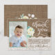 L'Aqua et l'aquarelle blanche fleurit avec le carte de remerciements d'effet de toile de jute et de dentelle pour un baptême, un baptême ou une ?ère communion etc.