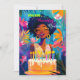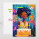 Carte parfaite pour cette reine spéciale dans votre vie ! Colorée, comme elle l'est, et tout aussi belle ! Des couleurs vives et brillantes en vert, rose et bleu pour mettre en valeur la façon dont elle illumine le monde. Arrière - plan est une belle flore vibrante qui rappelle les îles, et un beau gâteau d'anniversaire est la cerise sur le dessus !