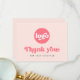 Carte de remerciements professionnel avec le texte "Merci" dans une police de style rétro. Texte rose (ou couleur personnalisée) sur un arrière - plan rose pâle. Téléchargez votre logo sur le devant et ajoutez du texte personnalisé sur le dos. Vous pouvez modifier les couleurs, déplacer et redimensionner les éléments à l'aide de l'outil de conception.
