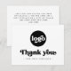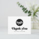 Carte de remerciements professionnel avec le texte "Merci" dans une police de style rétro. Texte noir (ou couleur personnalisée) sur un arrière - plan blanc (ou couleur personnalisée). Téléchargez votre logo sur le devant et ajoutez du texte personnalisé sur le dos. Vous pouvez modifier les couleurs, déplacer et redimensionner les éléments à l'aide de l'outil de conception.