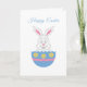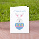 Une carte Happy Pâques amusante : elle vient avec un lapin aux oreilles roses qui sort d'un oeuf de Pâques bleu décoré de fleurs!