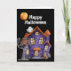 Amical Happy Halloween carte avertissant la lecture de courir dans une situation dangereuse.