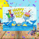 Envoyez à quelqu'un cette jolie carte de baleine pour leur souhaiter un joyeux anniversaire ! Trois baleines se sont rassemblées sur la mer bleue pour cette carte. Il y en a deux plus grandes, gauche et droite, et une plus petite au milieu. Les deux grandes baleines crachent de l'eau, faisant souffler des fontaines de leurs éclats. Sur la fontaine de la baleine gauche sont quelques cadeaux, sur la fontaine de la baleine à droite est un gâteau d'anniversaire. Entre eux, la petite baleine regarde vers le haut, où "Joyeux Anniversaire" est écrit en caractères jaunes gras dessinés à la main.