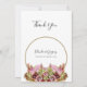 Ce design présente un bouquet de fleurs sauvages rustique. Un simple cadre de cercle doré encercle le texte. Les tons floraux roses rustiques viennent compléter la verdure des feuille. Les tons dorés cravate tout ensemble pour créer une atmosphère rustique de jardin boisé de campagne. Des rayures dorées et roses recouvrent l'arrière du design. Design élégant de cartes de remerciements de mariage avec des éléments modernes. Des invitations de mariage et d'autres articles de papeterie sont également disponibles.