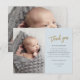 Cette photo moderne de remerciement note comporte un script or de remerciement, message personnel et une photo verticale sur le devant. Le dos comprend une deuxième photo bébé qui est une photo horizontale à fond saigné.