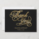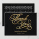 Un carte de remerciements mariage noir formel et élégant avec un script de calligraphie en faux or.