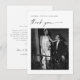 Express votre gratitude dans le style avec ces cartes de remerciement personnalisées et élégantes mariage photo. Avec votre photo de mariage préférée, ce design de cartes de remerciement mariage ajoute une touche personnelle. Customisez facilement le libellé des cartes de remerciement du mariage pour correspondre à votre tonalité. Parfait pour les couples à la recherche de mariage intemporel merci cartes avec photo.