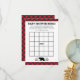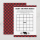 Jouez au bingo sur votre baby shower à thème bûcheron ! Les clients remplissent ces cartes de bingo avec les cadeaux qu'ils pensent que la future maman recevra. Quand Elle ouvre ses cadeaux, ils marquent les objets correspondants. Cette conception comprend un ours à bébé mignon avec un feuillage boisé et une bordure en plaid de buffle. Le dos de la carte est également plaid de buffle. Une invitation de baby shower de coordination est également disponible au magasin.