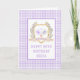 Mettez la scène avec cette belle carte d'anniversaire personnalisée pour le pickleball. Cette conception a une aquarelle image d'une crête entourée de branches avec des pagaies en vichy pickleball violet et vert au centre. Il y a une bordure en vichy violet dans l'arrière - plan. Les couleurs utilisées comprennent le vert mousse, la lavande, le violet et le bronzage. Vous pouvez personnaliser avec un nom et une année d'anniversaire.