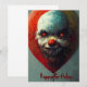 Clown malin avec le sourire maléfique sur ballon rouge vous souhaitant un joyeux anniversaire