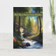 Carte de camp d'été pour Grand-fils qui pêche dans une zone boisée avec une mignonne orignal le regardant. Il y a un ruisseau qui traverse les bois, de jolis arbres et un bâtiment au loin. Merci à la technologie IA et Creative Fabrica pour certains des éléments dans la conception. La deuxième conception a simplement changé un peu le libellé.
