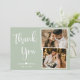 Élégant, minimaliste Main Lettré Sage Vert Mariage blanc Photo Collage Carte de remerciements. Un élégant modèle mariage multi-photo avec deux (2) photos à l'avant et une (1) photo à l'arrière. Avec le texte "Merci" dans une jolie police manuscrite de typographie en blanc sur pastel clair sauge vert couleur arrière - plan. Personnalisez le nom personnalisé et le message de remerciement. Si vous préférez écrire votre note à la main, supprimez simplement l'exemple de texte pour gagner de l'espace. Si vous avez besoin d'aide ou d'un article correspondant, veuillez contacter le concepteur !