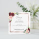 Une carte moderne avec script noir, flûtes bordeaux et bleu.