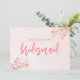 La carte de femme de chambre Watercolor Floral Cherry Blossom Bridesmaid Card est un article spécial qui combine la beauté de l'aquarelle, des motifs floraux, et la saison printanière. Cette carte est parfaite pour les épouses-à-être qui veulent proposer à leurs demoiselles d'honneur et leur demander de faire partie de leur journée spéciale. La carte présente de délicates fleurs de cerisiers dans les tons rose et blanc, peintes dans un style aquarelle qui lui donne une sensation douce et romantique. Le design floral est complété par une élégante typographie, qui dit : "Serez-vous ma demoiselle d'honneur ?" Ce qui rend cette carte spéciale est sa capacité à capturer l'essence du printemps et la beauté de la nature d'une manière à la fois charmant et sophistiquée. L'utilisation de l'aquarelle lui donne une sensation artisanale qui le distingue des cartes imprimées traditionnelles. La carte de femme de chambre Watercolor Floral Cherry Blossom est plus qu'une simple carte ; c'est un geste réfléchi qui exprime à quel point la mariée attache de l'importance à sa relation avec ses servantes d'accueil. C'est un moyen de leur faire se sentir spéciaux et appréciés et de leur montrer combien leur soutien signifie pour elle. En conclusion, la carte de femme de chambre Watercolor Floral Cherry Blossom est une option magnifique et unique pour les épouses qui cherchent quelque chose de spécial pour demander à leurs demoiselles d'honneur de faire partie de leur mariage. Son utilisation de l'aquarelle, des motifs floraux et des fleurs de cerisiers en font un moyen élégant et mémorable de montrer son appréciation à ceux qui sont le plus proches de la mariée.