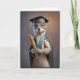 Cette carte de diplôme montre un adorable portrait d'une très fière toile portant son diplôme et portant son casquette, sa ceinture et sa robe le jour de la remise des diplômes ! Le message à l'intérieur dit : "Allez-y et soyez fiers de vous. Vous le méritez ! Félicitations au diplômé."