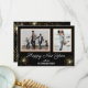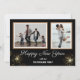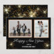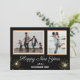 Elégant et moderne carte photo de vacances dispose de deux photos préférées alignées côte à côte, avec "Bonne Année" et lumières. Un riche arrière - plan noir ajoute une élégance classique à votre accueil de vacances. Vous pouvez ajouter votre propre logo, photo, image graphique, texte ou acheter tel quel ! Ici vous pouvez supprimer, modifier et customiser les couleurs arrière - plans.