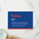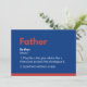 Carte de jour pour pères Superhero Superdad : Cette carte de fête des pères super-héros en rouge et bleu a une définition du nom "Père" (1.Jouer comme un enfant, donner des conseils comme un ami et protéger comme un garde du corps. 2.Superhero sans cap). Cette joyeuse carte de fête des pères est unique et si réfléchie. Parfait pour montrer votre amour et votre gratitude sur la fête des pères. N'importe quel père adorera cette meilleure carte papa. :) Heureux vous ! Vous avez quatre choix de couleurs pour cette carte de fête des pères. Bonne fête des pères !