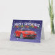 Ce modèle de voiture de la carte de Noël comporte un message "Joyeux Noël" illuminé par des lumières de fées au-dessus d'une illustration d'une voiture cabriolet convertible britannique 2002 en couleur rouge solaire. L'intérieur de cette carte de Noël comporte également un message pré-imprimé "Joyeux Noël".