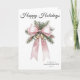Elégante carte de Noël rose et vert doux avec un arc rose satin magnifique comme pièce maîtresse. Parfait pour répandre la joie de vacances avec une touche sophistiquée et moderne.