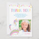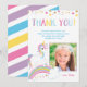 Remerciements Carte de photo d'anniversaire licorne arc-en-ciel