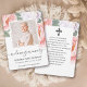 Pink Floral Photo Sympathy Funeral Prayer Card Ce design présente une aquarelle rose floral sur une carte de prière qui peut être customisée avec votre texte et votre photo.