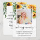 Tournesol Photo Sympathy Funeral Prayer Card Cette conception comporte un tournesol aquarelle sur une carte de prière qui peut être customisée avec votre texte et votre photo.