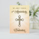 Une carte de 2e anniversaire d'ordination présentant une croix de couleur or. Célébrez un jubilé avec ce fond en forme d'explosion d'étoiles qui donne vie et met l'accent sur la croix. Au format 3,5 x 5, ce sera un beau souvenir pour que chacun célèbre un anniversaire d'ordination—nom et date personnalisables.