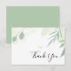 Cette carte de remerciement à feuilles vertes est parfaite pour un mariage moderne. Vous pouvez personnaliser le verso de la carte avec vos noms et un message de remerciement. Ces cartes peuvent être utilisées pour un mariage, une fête prénatale, ou tout événement spécial.