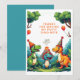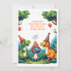 Dites « Merci » avec une touche de dinosaure avec cette carte de remerciement personnalisée ! Avec des dinosaures joueurs, un décor de forêt luxuriante et un volcan en éruption, ce design ajoute une touche préhistorique à votre message sincère.