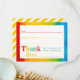 Ces cartes de remerciement à remplir avec peinture à l'eau arc-en-ciel pour enfants sont le moyen idéal pour remercier les invités d'avoir assisté à la fête de votre enfant. Laissez les enfants remplir la note de remerciement pour un moyen facile et amusant de dire merci. Personnalisez le texte ou laissez tel quel pour une carte de remerciement parfaite.
