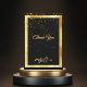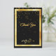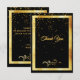 Un fond de couleur noir et un cadre doré faux. Avec une pluie de confettis dorés. Sur le devant, un style d'écriture manuscrite moderne et le texte : Merci et un décor floral doré faux.