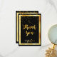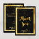 Un fond de couleur noire et un cadre doré faux. Avec une pluie de confettis dorés. Sur le devant, un style de lettrage manuscrit et le texte : Merci ! et un décor floral doré faux. Dos : Modèle pour votre note de remerciement et nom/noms