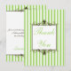 Cette carte de remerciement élégante et chic de style invitation rayée vert pomme et blanc avec des accents de défilement marron est sur du papier blanc de base. Le texte et le choix du papier sont personnalisables. Il existe également un style de carte de vœux, si vous préférez cela. Si vous souhaitez une carte comme celle-ci, mais avec une zone de modèle de photo pour ajouter votre photo de mariage, envoyez-moi simplement un courriel à ce sujet. Si vous avez besoin d'autres articles assortis, veuillez envoyer un courriel à niteowlstudio@gmail.com avec votre demande.