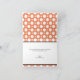 Cartes de remerciement avec un motif à pois assortis de différentes tailles de cercles blancs sur fond orange de style café. "merci" est imprimé en diagonale en blanc sur le devant, sur une bande noire en diagonale dans le coin inférieur droit. L'intérieur est imprimé sur mesure avec votre propre texte ou peut être facilement laissé en blanc pour y écrire à la main vos propres sentiments de gratitude. Autour de cette zone de texte de modèle se trouve le même motif à pois assortis, un élément unique par opposition à l'intérieur blanc typique. Ce style et cette palette de couleurs font de ces cartes un choix approprié pour les douches de mariée, les douches de bébé et les anniversaires.