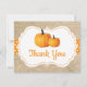 Carte de remerciement automne citrouille orange toile de jute. Pour une personnalisation supplémentaire, veuillez cliquer sur le bouton "Personnaliser" et utiliser notre outil de conception pour modifier ce modèle.